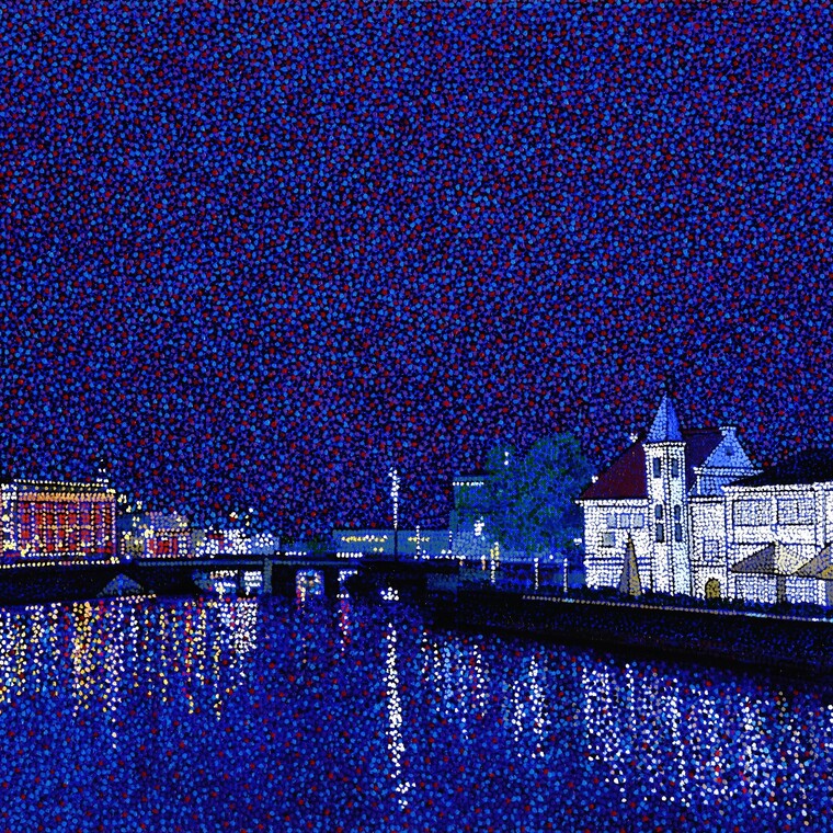 • [작가노트] 나는 점으로 그림을 그리는 점묘화가다. 인물, 정물, 풍경 등 다양한 소재를 다루고 있지만 작품들 중에서 항상 공통적으로 드러나는 것은 바로 점(dot)이라 할 수 있다. 처음부터 점을 작품의 주요한 표현요소로서 염두에 두지는 않았다. 나는 작품 대상(image)에 내재되어있는 색(color)을 더 잘 표현하기 위해 끊임없이 색을 나누고 분해하는 시도를 하였고, 그러한 노력은 자연스럽게 화폭에서 무수한 점들의 혼합과 질서 있는 뒤섞임으로 나타났다. 내가 표현하는 점묘는 빛에 의해 만들어진 색이 아니라 눈에 보여진 감성적 색을 표현하기 위해 빛을 활용한다는 것이 인상주의의 점묘와는 다른점이고 단순히 색들의 대비나 병치가 아닌 눈에 인식된 색과 빛에 대한 표현(impression)이라 할 수 있다.