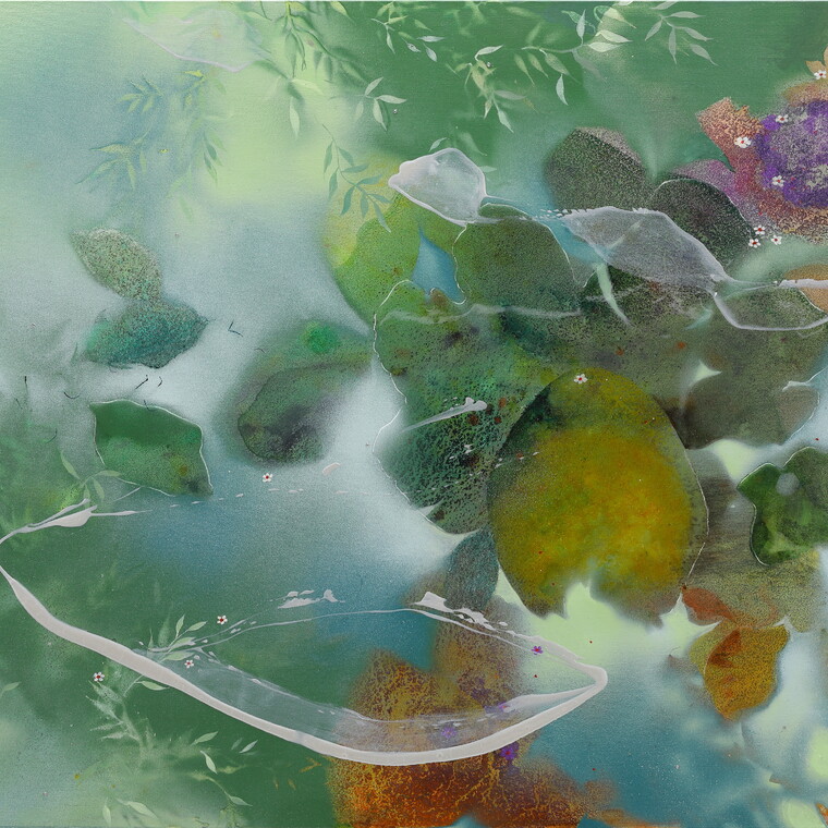 • [작가노트] 자연과 인간의 조화로운 상생을 주제로, 물이라는 매개체를 통해 그 본질을 탐구하고자 한다. 새벽안개 속에서 자연은 흐릿하면서도 선명한 경계를 지니며, 마치 꿈의 세계를 떠도는 듯한 신비로운 경험을 선사한다. 이 작업은 단순한 풍경이 아니라, 경험적 자연과 감각적인 실재가 교차하는 마음의 풍경을 그려내는 과정이다. 물은 만물의 근원이자 생명의 원천이며, 그 유연함과 투명함은 자연의 변화를 담아내는 중요한 요소이다. 새벽안개 속에서 자연은 명확함과 모호함을 넘나들며, 마치 꿈속을 거니는 듯한 느낌을 자아낸다. 물의 유동성과 투명성을 활용해 변화하는 이미지를 담아내고, 이를 통해 자연의 본질과 시간의 흐름을 시각적으로 표현하고자 한다. 물은 시간과 함께 흐르며, 그 속에서 생명은 시작되고 성장한다. 강줄기를 따라 흐르는 물은 빛을 머금고 찬란한 풍경으로 다시금 자연 위에 반사된다. 이러한 과정은 자연의 깊이와 아름다움을 재발견하게 하며, 물이 지닌 치유적 속성을 드러낸다. 물은 마치 어머니처럼 모든 것을 포용하고, 생명에게 끝없는 영감을 제공하며, 인간과 자연의 관계를 재정립하는 매개체가 된다. 어릴 적 자개장에 비쳤던 물의 감각을 작품 속에 구현하고자, 자개 없이도 자개 느낌을 표현하는 시도를 했다. 그 기억은 작업의 중요한 출발점이 되었으며, 자연과 인간, 그리고 물이라는 요소를 통해 다시금 되살아난다. 이를 더욱 심화하기 위해 크리스탈 레진과 비즈를 사용하여 물의 투명함과 빛의 반사를 작품 속에 담았다. 이 작업은 물을 통해 자연의 이치를 이해하고, 인간과 자연이 조화롭게 공존하는 과정을 시각적으로 탐구하는 것이다. 변화와 흐름 속에서 상생의 의미를 찾고, 자연과 인간이 함께 흘러가는 아름다운 순간을 담아낸다.
