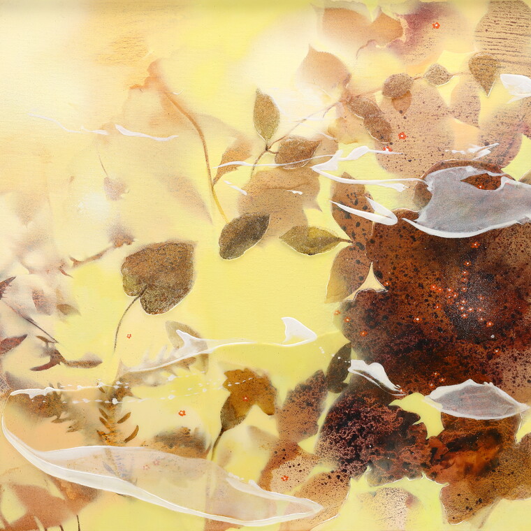• [작가노트] 자연과 인간의 조화로운 상생을 주제로, 물이라는 매개체를 통해 그 본질을 탐구하고자 한다. 새벽안개 속에서 자연은 흐릿하면서도 선명한 경계를 지니며, 마치 꿈의 세계를 떠도는 듯한 신비로운 경험을 선사한다. 이 작업은 단순한 풍경이 아니라, 경험적 자연과 감각적인 실재가 교차하는 마음의 풍경을 그려내는 과정이다. 물은 만물의 근원이자 생명의 원천이며, 그 유연함과 투명함은 자연의 변화를 담아내는 중요한 요소이다. 새벽안개 속에서 자연은 명확함과 모호함을 넘나들며, 마치 꿈속을 거니는 듯한 느낌을 자아낸다. 물의 유동성과 투명성을 활용해 변화하는 이미지를 담아내고, 이를 통해 자연의 본질과 시간의 흐름을 시각적으로 표현하고자 한다. 물은 시간과 함께 흐르며, 그 속에서 생명은 시작되고 성장한다. 강줄기를 따라 흐르는 물은 빛을 머금고 찬란한 풍경으로 다시금 자연 위에 반사된다. 이러한 과정은 자연의 깊이와 아름다움을 재발견하게 하며, 물이 지닌 치유적 속성을 드러낸다. 물은 마치 어머니처럼 모든 것을 포용하고, 생명에게 끝없는 영감을 제공하며, 인간과 자연의 관계를 재정립하는 매개체가 된다. 어릴 적 자개장에 비쳤던 물의 감각을 작품 속에 구현하고자, 자개 없이도 자개 느낌을 표현하는 시도를 했다. 그 기억은 작업의 중요한 출발점이 되었으며, 자연과 인간, 그리고 물이라는 요소를 통해 다시금 되살아난다. 이를 더욱 심화하기 위해 크리스탈 레진과 비즈를 사용하여 물의 투명함과 빛의 반사를 작품 속에 담았다. 이 작업은 물을 통해 자연의 이치를 이해하고, 인간과 자연이 조화롭게 공존하는 과정을 시각적으로 탐구하는 것이다. 변화와 흐름 속에서 상생의 의미를 찾고, 자연과 인간이 함께 흘러가는 아름다운 순간을 담아낸다.