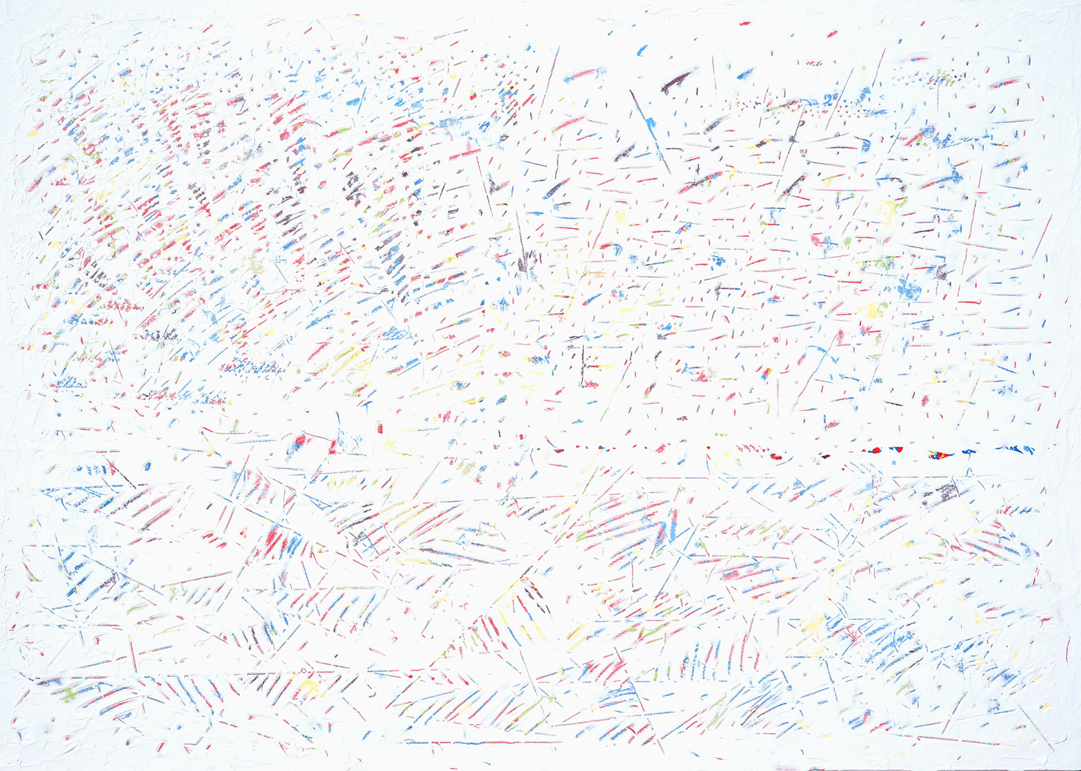 [평론] 박동수의 작품은 원색 계통의 물감을 흘려 뿌려 뒤덮은 화면 위에 흰 안료를 전체적으로 두께 있게 입힌 후, 그 다음에 여러 가지 이미지를 선과 면으로 긁어내는 스크레이핑(scraping) 기법을 사용한다. 아래에 있 는 원색의 물감 층은 직관, 본능, 무의식, 꿈 등의 역동적 영역이며, 위를 덮은 흰 안료 층은 현실, 이성, 개념 등의 의식적 영역이다. 그의 작품은 이 두 영역 사이에 작용하는 긴장과 이완의 관계를 역동적으로 매개하는 것이며, 그 가운데 조화롭고 생동적인 이미지를 표현해 내는 것이다. 긁어내어 드러난 이미지들은 변증법적 발전을 거친 또 하나의 이른바 ‘순수하게 정제되고 집약된 역동 성’을 느끼게 해 준다. 유명한 미술사가인 빈켈만이 말한 ‘고귀한 단순과 고요한 위대’에 비견된다. 실제 그의 작품을 조금 떨어져서 거리를 두고 보면, 화면 전체를 가득 채운 선들은 전면균질회화(All Over Painting)를 이루면서 동양적 사유가 깃든 고요한 역동성을 느낄 수 있다.