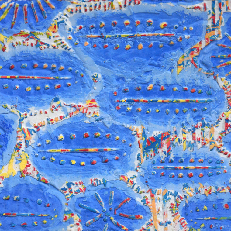 • [평론] 박동수의 작품은 원색 계통의 물감을 흘려 뿌려 뒤덮은 화면 위에 흰 안료를 전체적으로 두께 있게 입힌 후, 그 다음에 여러 가지 이미지를 선과 면으로 긁어내는 스크레이핑(scraping) 기법을 사용한다. 아래에 있 는 원색의 물감 층은 직관, 본능, 무의식, 꿈 등의 역동적 영역이며, 위를 덮은 흰 안료 층은 현실, 이성, 개념 등의 의식적 영역이다. 그의 작품은 이 두 영역 사이에 작용하는 긴장과 이완의 관계를 역동적으로 매개하는 것이며, 그 가운데 조화롭고 생동적인 이미지를 표현해 내는 것이다. 긁어내어 드러난 이미지들은 변증법적 발전을 거친 또 하나의 이른바 ‘순수하게 정제되고 집약된 역동 성’을 느끼게 해 준다. 유명한 미술사가인 빈켈만이 말한 ‘고귀한 단순과 고요한 위대’에 비견된다. 실제 그의 작품을 조금 떨어져서 거리를 두고 보면, 화면 전체를 가득 채운 선들은 전면균질회화(All Over Painting)를 이루면서 동양적 사유가 깃든 고요한 역동성을 느낄 수 있다.