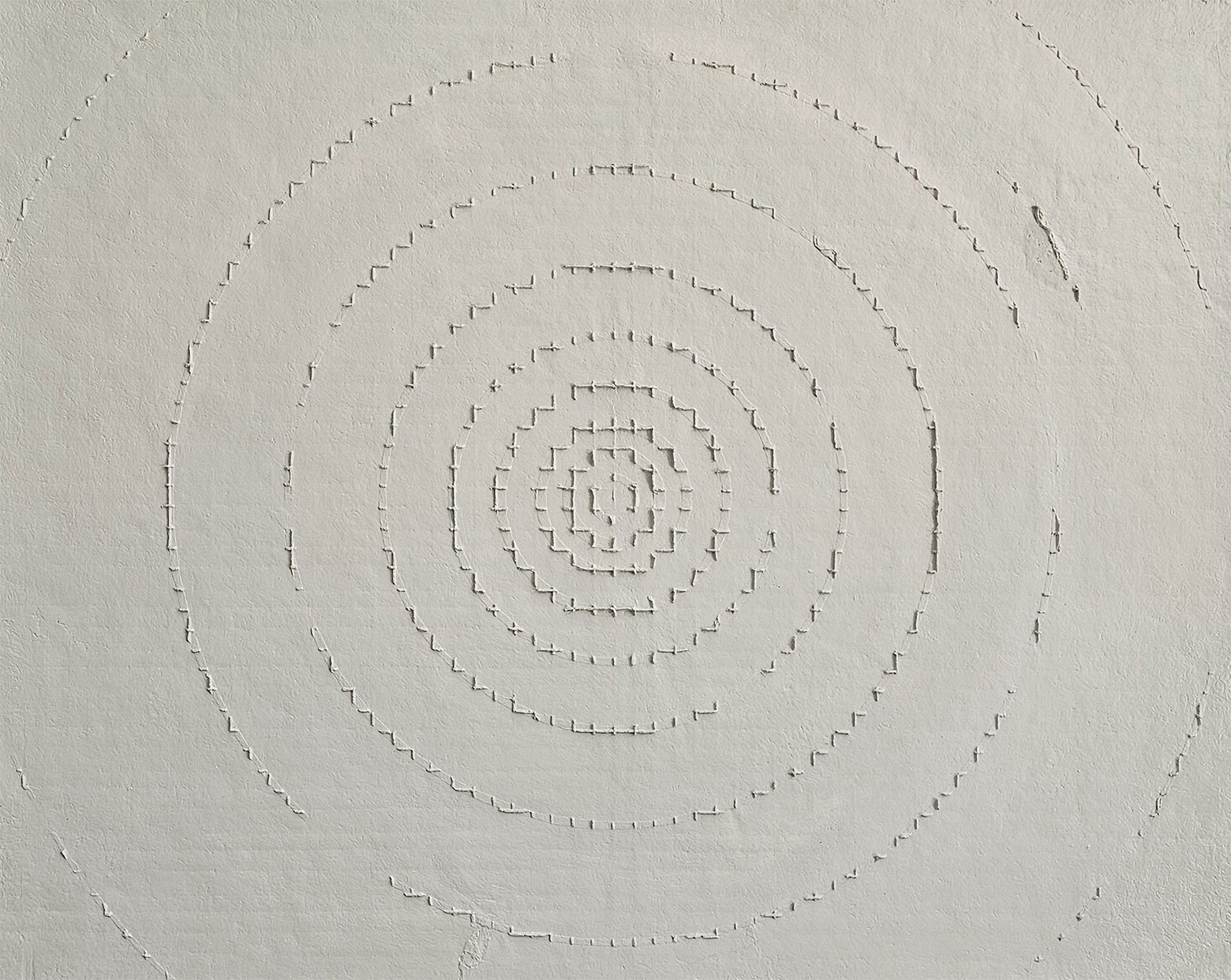 [작가노트] 관계 인간은 자연과의 어우러짐 속에서 그 근원을 점과 선을 통해 찾을 수 있으니... 끊임없이 이어지는 삶의 카테고리 속에서 반복의 질서를 통해 우주의 근본을 찾을 수 있을 것이다. 생명의 탄생과 반복적 경험을 점과 선을 통해 이야기하고자 한다. 끊임없이 이어지는 삶의 반복적 질서를 몸소 재현하듯 펼쳐진 펄프 위에 반복적 행위 속에서 드러나는 점 또는 선의 요철을 통해 자연과 호흡하고자 했으며, 그 공기는 리듬을 타고 이어진다. 주재료인 한지는 재료라는 개념과 작품의 개념이 분리되는 것이 아니라 그 자체로 작품이 되는데, 이는 곧 ‘바탕재료’적인 측면과 그 자체가 작품화 되는 ‘오브제’적인 두 가지 측면을 동시에 지니고 있다. 이러한 한지의 물성은 곧 작품 본연의 존재방식이라는 메시지가 되어 작품의 독자적인 매체로 작용하게 된다. 평면에서의 파장의 원을 입체적으로 표현함으로써 내면과 외면의 동일성을 보여줌과 동시에 음과 양의 조화를 꾀하고자 하였다.