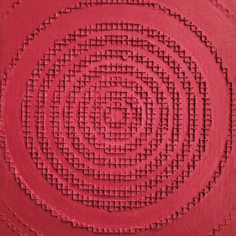 • [작가노트] 관계 인간은 자연과의 어우러짐 속에서 그 근원을 점과 선을 통해 찾을 수 있으니... 끊임없이 이어지는 삶의 카테고리 속에서 반복의 질서를 통해 우주의 근본을 찾을 수 있을 것이다. 생명의 탄생과 반복적 경험을 점과 선을 통해 이야기하고자 한다. 끊임없이 이어지는 삶의 반복적 질서를 몸소 재현하듯 펼쳐진 펄프 위에 반복적 행위 속에서 드러나는 점 또는 선의 요철을 통해 자연과 호흡하고자 했으며, 그 공기는 리듬을 타고 이어진다. 주재료인 한지는 재료라는 개념과 작품의 개념이 분리되는 것이 아니라 그 자체로 작품이 되는데, 이는 곧 ‘바탕재료’적인 측면과 그 자체가 작품화 되는 ‘오브제’적인 두 가지 측면을 동시에 지니고 있다. 이러한 한지의 물성은 곧 작품 본연의 존재방식이라는 메시지가 되어 작품의 독자적인 매체로 작용하게 된다. 평면에서의 파장의 원을 입체적으로 표현함으로써 내면과 외면의 동일성을 보여줌과 동시에 음과 양의 조화를 꾀하고자 하였다.