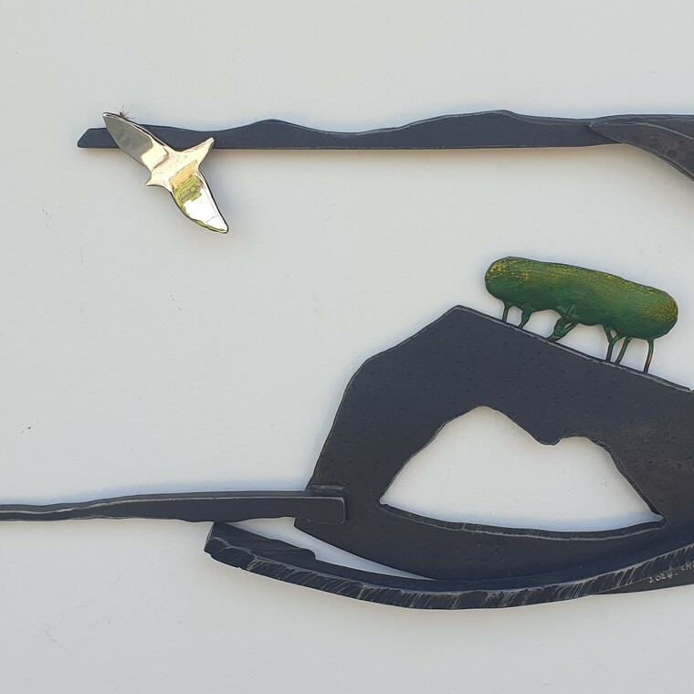 • [작가노트] 철로 만든 새들의 이야기 우리는 철의 차갑고 딱딱한 울타리 속 구조물에서 생활하며 살아간다 하여도 과언이 아니다. 이번 작업은 자유롭게 비행하며 날갯짓 하는 새들의 표현들을 우리가 살아가는 삶에 이야기들로 비유한 작품이다. 철의 선(線)속에서 조형적인 면(面)을 찾아가고 그 속에 생명의 점(點)을 찍어 형(形)상을 만들어가는 작업과정에서 즉흥적, 우연적으로 만난 철의 변화들을 딱딱한 구조물과 장식이 아닌 미술의 언어로 재해석하고 조형예술로 표출해 내는 작품들이다. 아마도 우리들 마음속 한 구석에는 철의 울타리를 벗어나 새들처럼 자유롭게 허공을 날고 싶은 욕망이 남아있을 것이다.