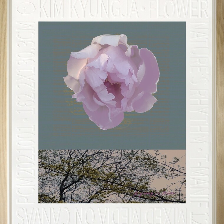 • [작가노트] 작품의 주제인 'Nature' Rhythm(자연의리듬)'을 사진과 computer와 수작업을 접목하여 제작한 미술작품 속에서의 종합예술. 자연의 리듬이라는 명제아래서 추구하는것은 자연과의 만남이고 생명과의 교감이라 할수있다. 꽃 이미지와 자연의 이미지를 병합시켜 상호간에 주고받는 대화적 관계를 보여주면서 자연 자체가 가진 고유의 리듬감을 인간이 만든 실제의 음악적 요소와 연결시켜 감상자로 하여금 화면에 몰입하도록 화면의 바탕에 놓여 진 실제적 악보의 리듬감을 같이 향유할 수 있게 하였다. 자연 이미지는 직접 찍은 사진을 변형 혹은 crop하고 강도에 변화를 주면서 blur, out-focus 처리를 한다. 악보는 좋아하는 곡을 선정하여 바탕색과 형태를 여러가지로 변화를 주거나 악보 자체를 변형시킨다. 꽃의 살아 움직이는듯한 이미지를 포착하여 칼라 및 형태의 변화를 주어 배치한다. 위의 세가지를 재구성하여 출력한 다음 Polymer Varnish(UVLS)로 표면처리한후 acrylic으로 retouch하거나 knife로 재작업한다. 마지막으로 부분적으로 석채나 유리 알갱이로 도포한다. 또 마티스의 화가의 비망록에서처럼 ‘내가 묘사하고자 하는 것은 관람자를 그림에 연루시키면서도 특정한 사물 이외의 어떤 것을 자유롭게 연상하도록 만들어서 작가와 관객과의 격차를 줄여 보려 하였다.