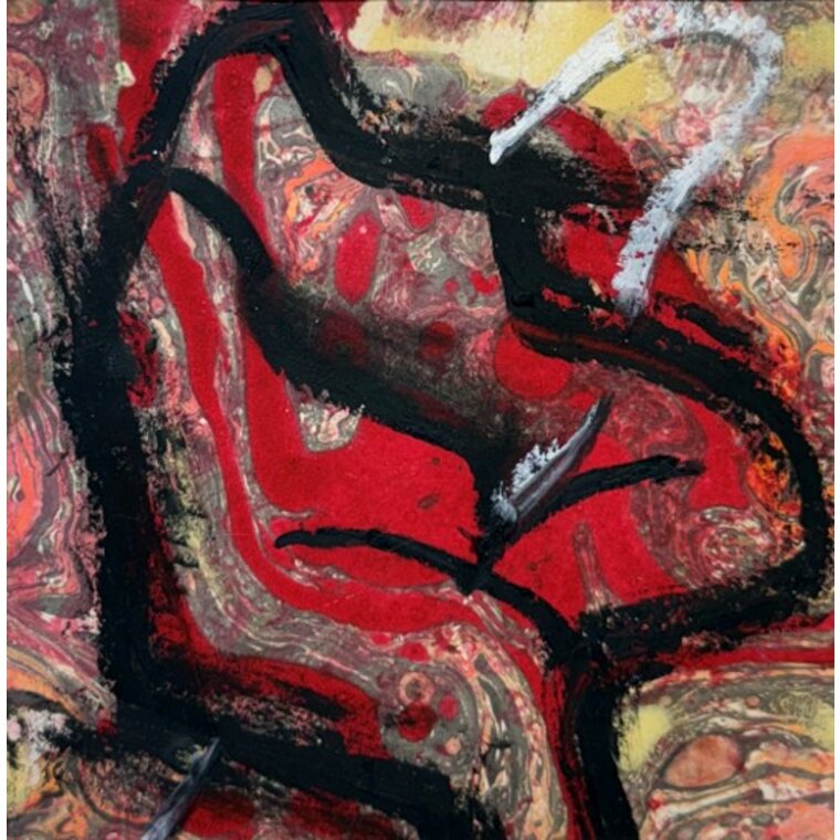 Marbling color, Pine pollen, Colored pencil, Oil pastel on paper 13.5×13.5cm 2025