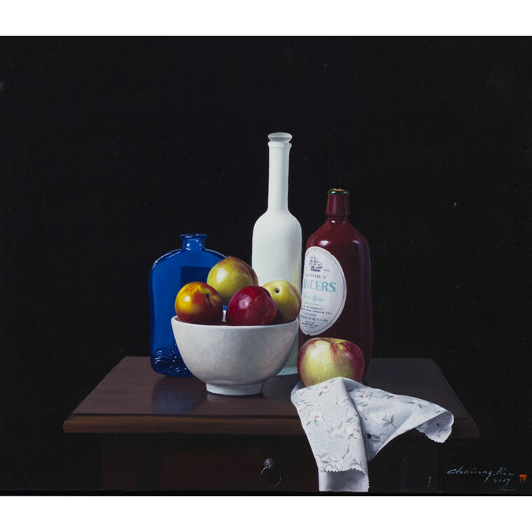 • [작가노트] 그림을 그리는 작업은 새로운 꿈을 꾸는 것이다. 거기 그 사물(being)이 그 적절한 자리에서 하나의 필수 불가결한 아름다운 대상이 되는 것, 그 대상들 하나하나가 나의 분신이 되고, 내 잃어버린 꿈의 파편이 된다. 떠도는 일상의 사물들이 새로운 이름을 주고, 더 아름답게 자리매김할 수 있도록 해 주고 싶다. 그들 각자는 이미 생명을 상실했지만, 하나의 그림이라는 공간에 놓여 짐으로 의미있는 시적 오브제의 재 탄생을 본다. 숨을 쉬는 그림, 그 대상들이 주는 더 미세한 호흡을 찾고 싶다. 마치 그려놓은 대상이 무생물체가 아닌, 무수한 꿈의 파편들이 부서져 그 잔해의 흔적을 극복하고 온전한 오브제가 되기까지 말이다. 상처 투성이의 아픈 심장을 가진 정물들을 나는 나의 그림 속에서 치유한다. 가장 께끗하고 온전한 것으로 표현되어 새로운 힘을 잉태하고 다시 하나의 커다란 힘에 응집되는 새로운 조화와 질서 위에 놓여지길 원한다. 나 스스로도 개입하길 원치않는 단지 거기 그 자리에 그들을 높여주는 일을 할 뿐이다. 그래서 굳이 내가 그들을 통해 무언가 말하려 하지 않아도 된다. 이 리얼리티의 벼랑 끝에서 그것들은 이미 현실의 being 이 아닌 것이다.제 2의 being 이 작품속에서 잉태하는 것이다. 작가 자신은 이제 붓을 내려놓는 이방인일 뿐이다. 작품이 자신들의 자리매김과 저마다의 색깔로 빛을 발할 때 쯤이면 나는 가끔 호흡을 멈춘다. 그들이 호흡하기 때문이다. 하나의 힘 안에 응집된 그들만의 질서, 거기 그 자리에 있어 흔들리지 않는 조화의 아름다움, 사물들 각자가 자존심을 회복하고, 어느날 아침 내가 눈을 떳을 때 그 미지의 공간에 그것들이 사라져 버릴 것 같은 두려움 때문이기도 하다. 새로운 자아의 탄생, 허물을 벗는 새로운 잉태, 벌거벗은 나신의 미지의 순수한 유혹, 그 낯선 시선 속에서 우리를 자각케 하고 체험케 한다. 혹 지나치기 쉬운 사실 안에서 가장 바른 사실의 긍정, 결코 억압하지 않고 자유로울 수 있는 자기 망각의 공간, 결코 세상에 존재하지 않는 참 긍정의 꿈의 영역,이것이 내가 표현하고자 하는 “사실”의 세계이다.
