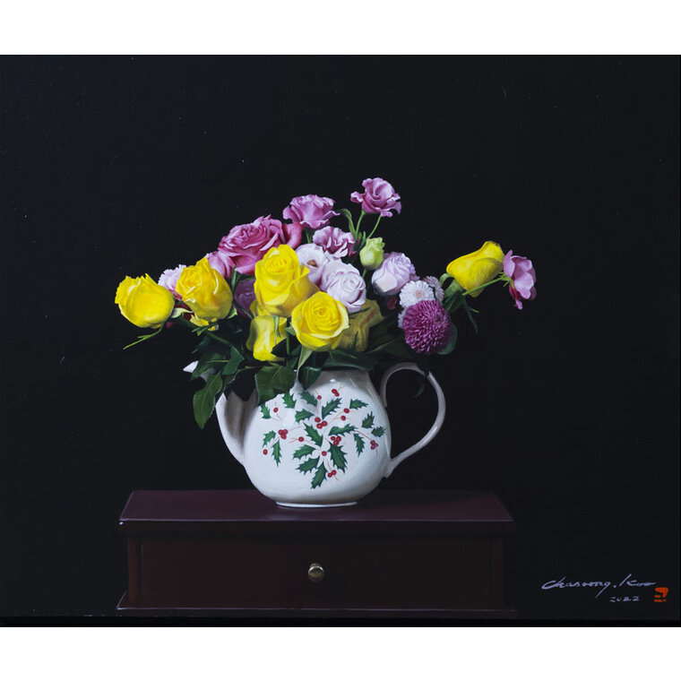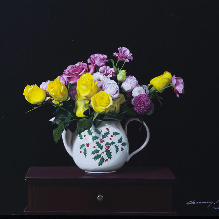 • [작가노트] 그림을 그리는 작업은 새로운 꿈을 꾸는 것이다. 거기 그 사물(being)이 그 적절한 자리에서 하나의 필수 불가결한 아름다운 대상이 되는 것, 그 대상들 하나하나가 나의 분신이 되고, 내 잃어버린 꿈의 파편이 된다. 떠도는 일상의 사물들이 새로운 이름을 주고, 더 아름답게 자리매김할 수 있도록 해 주고 싶다. 그들 각자는 이미 생명을 상실했지만, 하나의 그림이라는 공간에 놓여 짐으로 의미있는 시적 오브제의 재 탄생을 본다. 숨을 쉬는 그림, 그 대상들이 주는 더 미세한 호흡을 찾고 싶다. 마치 그려놓은 대상이 무생물체가 아닌, 무수한 꿈의 파편들이 부서져 그 잔해의 흔적을 극복하고 온전한 오브제가 되기까지 말이다. 상처 투성이의 아픈 심장을 가진 정물들을 나는 나의 그림 속에서 치유한다. 가장 께끗하고 온전한 것으로 표현되어 새로운 힘을 잉태하고 다시 하나의 커다란 힘에 응집되는 새로운 조화와 질서 위에 놓여지길 원한다. 나 스스로도 개입하길 원치않는 단지 거기 그 자리에 그들을 높여주는 일을 할 뿐이다. 그래서 굳이 내가 그들을 통해 무언가 말하려 하지 않아도 된다. 이 리얼리티의 벼랑 끝에서 그것들은 이미 현실의 being 이 아닌 것이다.제 2의 being 이 작품속에서 잉태하는 것이다. 작가 자신은 이제 붓을 내려놓는 이방인일 뿐이다. 작품이 자신들의 자리매김과 저마다의 색깔로 빛을 발할 때 쯤이면 나는 가끔 호흡을 멈춘다. 그들이 호흡하기 때문이다. 하나의 힘 안에 응집된 그들만의 질서, 거기 그 자리에 있어 흔들리지 않는 조화의 아름다움, 사물들 각자가 자존심을 회복하고, 어느날 아침 내가 눈을 떳을 때 그 미지의 공간에 그것들이 사라져 버릴 것 같은 두려움 때문이기도 하다. 새로운 자아의 탄생, 허물을 벗는 새로운 잉태, 벌거벗은 나신의 미지의 순수한 유혹, 그 낯선 시선 속에서 우리를 자각케 하고 체험케 한다. 혹 지나치기 쉬운 사실 안에서 가장 바른 사실의 긍정, 결코 억압하지 않고 자유로울 수 있는 자기 망각의 공간, 결코 세상에 존재하지 않는 참 긍정의 꿈의 영역,이것이 내가 표현하고자 하는 “사실”의 세계이다.