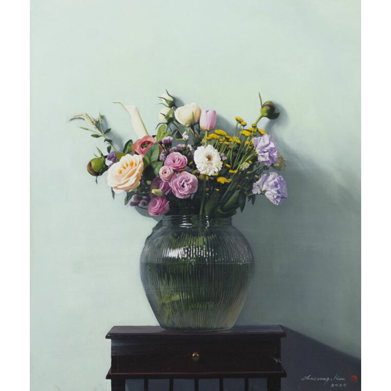 • [작가노트] 그림을 그리는 작업은 새로운 꿈을 꾸는 것이다. 거기 그 사물(being)이 그 적절한 자리에서 하나의 필수 불가결한 아름다운 대상이 되는 것, 그 대상들 하나하나가 나의 분신이 되고, 내 잃어버린 꿈의 파편이 된다. 떠도는 일상의 사물들이 새로운 이름을 주고, 더 아름답게 자리매김할 수 있도록 해 주고 싶다. 그들 각자는 이미 생명을 상실했지만, 하나의 그림이라는 공간에 놓여 짐으로 의미있는 시적 오브제의 재 탄생을 본다. 숨을 쉬는 그림, 그 대상들이 주는 더 미세한 호흡을 찾고 싶다. 마치 그려놓은 대상이 무생물체가 아닌, 무수한 꿈의 파편들이 부서져 그 잔해의 흔적을 극복하고 온전한 오브제가 되기까지 말이다. 상처 투성이의 아픈 심장을 가진 정물들을 나는 나의 그림 속에서 치유한다. 가장 께끗하고 온전한 것으로 표현되어 새로운 힘을 잉태하고 다시 하나의 커다란 힘에 응집되는 새로운 조화와 질서 위에 놓여지길 원한다. 나 스스로도 개입하길 원치않는 단지 거기 그 자리에 그들을 높여주는 일을 할 뿐이다. 그래서 굳이 내가 그들을 통해 무언가 말하려 하지 않아도 된다. 이 리얼리티의 벼랑 끝에서 그것들은 이미 현실의 being 이 아닌 것이다.제 2의 being 이 작품속에서 잉태하는 것이다. 작가 자신은 이제 붓을 내려놓는 이방인일 뿐이다. 작품이 자신들의 자리매김과 저마다의 색깔로 빛을 발할 때 쯤이면 나는 가끔 호흡을 멈춘다. 그들이 호흡하기 때문이다. 하나의 힘 안에 응집된 그들만의 질서, 거기 그 자리에 있어 흔들리지 않는 조화의 아름다움, 사물들 각자가 자존심을 회복하고, 어느날 아침 내가 눈을 떳을 때 그 미지의 공간에 그것들이 사라져 버릴 것 같은 두려움 때문이기도 하다. 새로운 자아의 탄생, 허물을 벗는 새로운 잉태, 벌거벗은 나신의 미지의 순수한 유혹, 그 낯선 시선 속에서 우리를 자각케 하고 체험케 한다. 혹 지나치기 쉬운 사실 안에서 가장 바른 사실의 긍정, 결코 억압하지 않고 자유로울 수 있는 자기 망각의 공간, 결코 세상에 존재하지 않는 참 긍정의 꿈의 영역,이것이 내가 표현하고자 하는 “사실”의 세계이다.