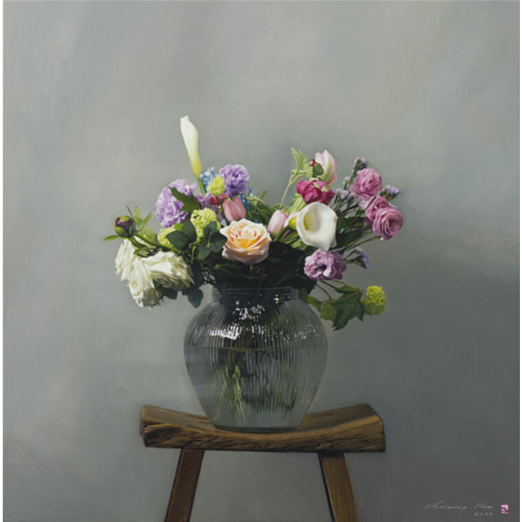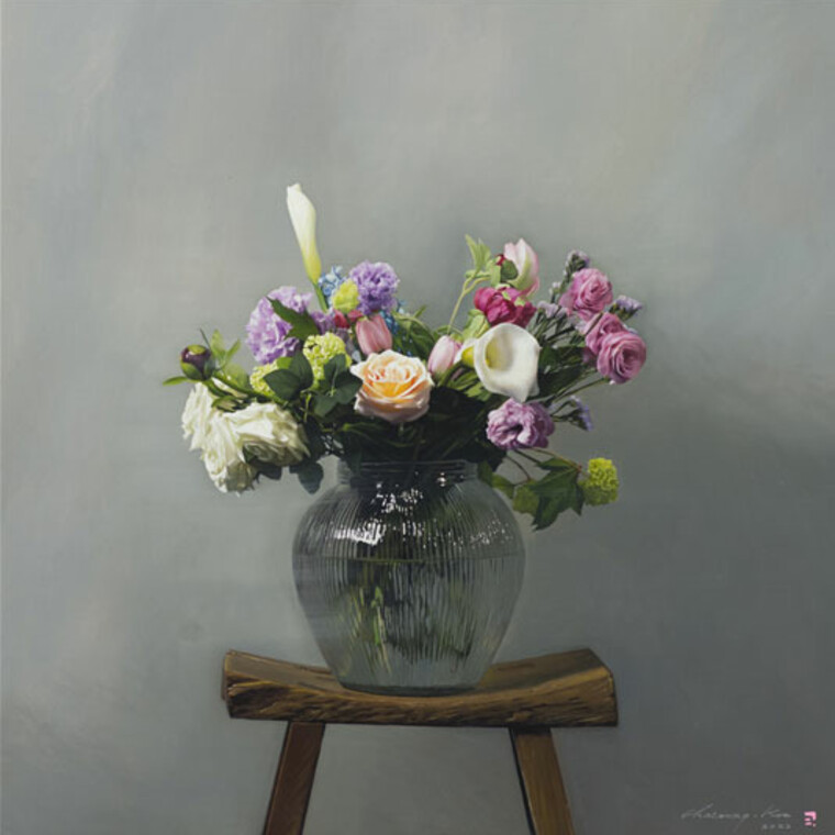 • [작가노트] 그림을 그리는 작업은 새로운 꿈을 꾸는 것이다. 거기 그 사물(being)이 그 적절한 자리에서 하나의 필수 불가결한 아름다운 대상이 되는 것, 그 대상들 하나하나가 나의 분신이 되고, 내 잃어버린 꿈의 파편이 된다. 떠도는 일상의 사물들이 새로운 이름을 주고, 더 아름답게 자리매김할 수 있도록 해 주고 싶다. 그들 각자는 이미 생명을 상실했지만, 하나의 그림이라는 공간에 놓여 짐으로 의미있는 시적 오브제의 재 탄생을 본다. 숨을 쉬는 그림, 그 대상들이 주는 더 미세한 호흡을 찾고 싶다. 마치 그려놓은 대상이 무생물체가 아닌, 무수한 꿈의 파편들이 부서져 그 잔해의 흔적을 극복하고 온전한 오브제가 되기까지 말이다. 상처 투성이의 아픈 심장을 가진 정물들을 나는 나의 그림 속에서 치유한다. 가장 께끗하고 온전한 것으로 표현되어 새로운 힘을 잉태하고 다시 하나의 커다란 힘에 응집되는 새로운 조화와 질서 위에 놓여지길 원한다. 나 스스로도 개입하길 원치않는 단지 거기 그 자리에 그들을 높여주는 일을 할 뿐이다. 그래서 굳이 내가 그들을 통해 무언가 말하려 하지 않아도 된다. 이 리얼리티의 벼랑 끝에서 그것들은 이미 현실의 being 이 아닌 것이다.제 2의 being 이 작품속에서 잉태하는 것이다. 작가 자신은 이제 붓을 내려놓는 이방인일 뿐이다. 작품이 자신들의 자리매김과 저마다의 색깔로 빛을 발할 때 쯤이면 나는 가끔 호흡을 멈춘다. 그들이 호흡하기 때문이다. 하나의 힘 안에 응집된 그들만의 질서, 거기 그 자리에 있어 흔들리지 않는 조화의 아름다움, 사물들 각자가 자존심을 회복하고, 어느날 아침 내가 눈을 떳을 때 그 미지의 공간에 그것들이 사라져 버릴 것 같은 두려움 때문이기도 하다. 새로운 자아의 탄생, 허물을 벗는 새로운 잉태, 벌거벗은 나신의 미지의 순수한 유혹, 그 낯선 시선 속에서 우리를 자각케 하고 체험케 한다. 혹 지나치기 쉬운 사실 안에서 가장 바른 사실의 긍정, 결코 억압하지 않고 자유로울 수 있는 자기 망각의 공간, 결코 세상에 존재하지 않는 참 긍정의 꿈의 영역,이것이 내가 표현하고자 하는 “사실”의 세계이다.