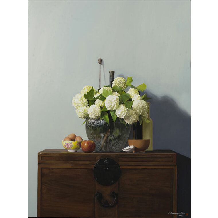 • [작가노트] 그림을 그리는 작업은 새로운 꿈을 꾸는 것이다. 거기 그 사물(being)이 그 적절한 자리에서 하나의 필수 불가결한 아름다운 대상이 되는 것, 그 대상들 하나하나가 나의 분신이 되고, 내 잃어버린 꿈의 파편이 된다. 떠도는 일상의 사물들이 새로운 이름을 주고, 더 아름답게 자리매김할 수 있도록 해 주고 싶다. 그들 각자는 이미 생명을 상실했지만, 하나의 그림이라는 공간에 놓여 짐으로 의미있는 시적 오브제의 재 탄생을 본다. 숨을 쉬는 그림, 그 대상들이 주는 더 미세한 호흡을 찾고 싶다. 마치 그려놓은 대상이 무생물체가 아닌, 무수한 꿈의 파편들이 부서져 그 잔해의 흔적을 극복하고 온전한 오브제가 되기까지 말이다. 상처 투성이의 아픈 심장을 가진 정물들을 나는 나의 그림 속에서 치유한다. 가장 께끗하고 온전한 것으로 표현되어 새로운 힘을 잉태하고 다시 하나의 커다란 힘에 응집되는 새로운 조화와 질서 위에 놓여지길 원한다. 나 스스로도 개입하길 원치않는 단지 거기 그 자리에 그들을 높여주는 일을 할 뿐이다. 그래서 굳이 내가 그들을 통해 무언가 말하려 하지 않아도 된다. 이 리얼리티의 벼랑 끝에서 그것들은 이미 현실의 being 이 아닌 것이다.제 2의 being 이 작품속에서 잉태하는 것이다. 작가 자신은 이제 붓을 내려놓는 이방인일 뿐이다. 작품이 자신들의 자리매김과 저마다의 색깔로 빛을 발할 때 쯤이면 나는 가끔 호흡을 멈춘다. 그들이 호흡하기 때문이다. 하나의 힘 안에 응집된 그들만의 질서, 거기 그 자리에 있어 흔들리지 않는 조화의 아름다움, 사물들 각자가 자존심을 회복하고, 어느날 아침 내가 눈을 떳을 때 그 미지의 공간에 그것들이 사라져 버릴 것 같은 두려움 때문이기도 하다. 새로운 자아의 탄생, 허물을 벗는 새로운 잉태, 벌거벗은 나신의 미지의 순수한 유혹, 그 낯선 시선 속에서 우리를 자각케 하고 체험케 한다. 혹 지나치기 쉬운 사실 안에서 가장 바른 사실의 긍정, 결코 억압하지 않고 자유로울 수 있는 자기 망각의 공간, 결코 세상에 존재하지 않는 참 긍정의 꿈의 영역,이것이 내가 표현하고자 하는 “사실”의 세계이다.