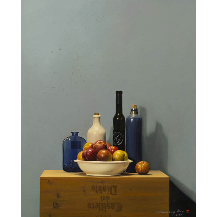 • [작가노트] 그림을 그리는 작업은 새로운 꿈을 꾸는 것이다. 거기 그 사물(being)이 그 적절한 자리에서 하나의 필수 불가결한 아름다운 대상이 되는 것, 그 대상들 하나하나가 나의 분신이 되고, 내 잃어버린 꿈의 파편이 된다. 떠도는 일상의 사물들이 새로운 이름을 주고, 더 아름답게 자리매김할 수 있도록 해 주고 싶다. 그들 각자는 이미 생명을 상실했지만, 하나의 그림이라는 공간에 놓여 짐으로 의미있는 시적 오브제의 재 탄생을 본다. 숨을 쉬는 그림, 그 대상들이 주는 더 미세한 호흡을 찾고 싶다. 마치 그려놓은 대상이 무생물체가 아닌, 무수한 꿈의 파편들이 부서져 그 잔해의 흔적을 극복하고 온전한 오브제가 되기까지 말이다. 상처 투성이의 아픈 심장을 가진 정물들을 나는 나의 그림 속에서 치유한다. 가장 께끗하고 온전한 것으로 표현되어 새로운 힘을 잉태하고 다시 하나의 커다란 힘에 응집되는 새로운 조화와 질서 위에 놓여지길 원한다. 나 스스로도 개입하길 원치않는 단지 거기 그 자리에 그들을 높여주는 일을 할 뿐이다. 그래서 굳이 내가 그들을 통해 무언가 말하려 하지 않아도 된다. 이 리얼리티의 벼랑 끝에서 그것들은 이미 현실의 being 이 아닌 것이다.제 2의 being 이 작품속에서 잉태하는 것이다. 작가 자신은 이제 붓을 내려놓는 이방인일 뿐이다. 작품이 자신들의 자리매김과 저마다의 색깔로 빛을 발할 때 쯤이면 나는 가끔 호흡을 멈춘다. 그들이 호흡하기 때문이다. 하나의 힘 안에 응집된 그들만의 질서, 거기 그 자리에 있어 흔들리지 않는 조화의 아름다움, 사물들 각자가 자존심을 회복하고, 어느날 아침 내가 눈을 떳을 때 그 미지의 공간에 그것들이 사라져 버릴 것 같은 두려움 때문이기도 하다. 새로운 자아의 탄생, 허물을 벗는 새로운 잉태, 벌거벗은 나신의 미지의 순수한 유혹, 그 낯선 시선 속에서 우리를 자각케 하고 체험케 한다. 혹 지나치기 쉬운 사실 안에서 가장 바른 사실의 긍정, 결코 억압하지 않고 자유로울 수 있는 자기 망각의 공간, 결코 세상에 존재하지 않는 참 긍정의 꿈의 영역,이것이 내가 표현하고자 하는 “사실”의 세계이다.