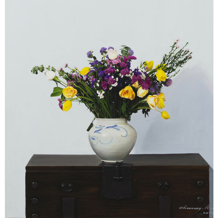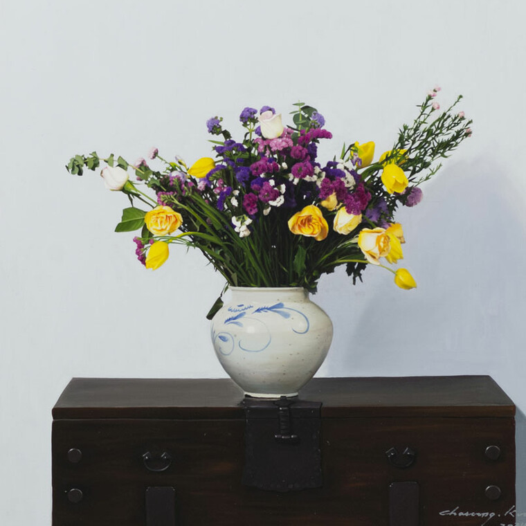 • [작가노트] 그림을 그리는 작업은 새로운 꿈을 꾸는 것이다. 거기 그 사물(being)이 그 적절한 자리에서 하나의 필수 불가결한 아름다운 대상이 되는 것, 그 대상들 하나하나가 나의 분신이 되고, 내 잃어버린 꿈의 파편이 된다. 떠도는 일상의 사물들이 새로운 이름을 주고, 더 아름답게 자리매김할 수 있도록 해 주고 싶다. 그들 각자는 이미 생명을 상실했지만, 하나의 그림이라는 공간에 놓여 짐으로 의미있는 시적 오브제의 재 탄생을 본다. 숨을 쉬는 그림, 그 대상들이 주는 더 미세한 호흡을 찾고 싶다. 마치 그려놓은 대상이 무생물체가 아닌, 무수한 꿈의 파편들이 부서져 그 잔해의 흔적을 극복하고 온전한 오브제가 되기까지 말이다. 상처 투성이의 아픈 심장을 가진 정물들을 나는 나의 그림 속에서 치유한다. 가장 께끗하고 온전한 것으로 표현되어 새로운 힘을 잉태하고 다시 하나의 커다란 힘에 응집되는 새로운 조화와 질서 위에 놓여지길 원한다. 나 스스로도 개입하길 원치않는 단지 거기 그 자리에 그들을 높여주는 일을 할 뿐이다. 그래서 굳이 내가 그들을 통해 무언가 말하려 하지 않아도 된다. 이 리얼리티의 벼랑 끝에서 그것들은 이미 현실의 being 이 아닌 것이다.제 2의 being 이 작품속에서 잉태하는 것이다. 작가 자신은 이제 붓을 내려놓는 이방인일 뿐이다. 작품이 자신들의 자리매김과 저마다의 색깔로 빛을 발할 때 쯤이면 나는 가끔 호흡을 멈춘다. 그들이 호흡하기 때문이다. 하나의 힘 안에 응집된 그들만의 질서, 거기 그 자리에 있어 흔들리지 않는 조화의 아름다움, 사물들 각자가 자존심을 회복하고, 어느날 아침 내가 눈을 떳을 때 그 미지의 공간에 그것들이 사라져 버릴 것 같은 두려움 때문이기도 하다. 새로운 자아의 탄생, 허물을 벗는 새로운 잉태, 벌거벗은 나신의 미지의 순수한 유혹, 그 낯선 시선 속에서 우리를 자각케 하고 체험케 한다. 혹 지나치기 쉬운 사실 안에서 가장 바른 사실의 긍정, 결코 억압하지 않고 자유로울 수 있는 자기 망각의 공간, 결코 세상에 존재하지 않는 참 긍정의 꿈의 영역,이것이 내가 표현하고자 하는 “사실”의 세계이다.