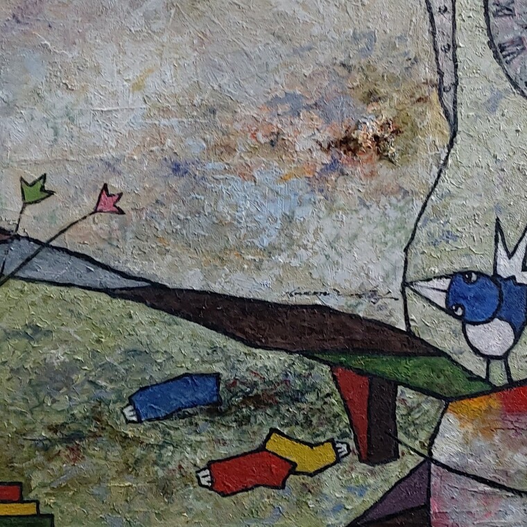 • [작가노트] 어떤여행 (UN VOYAGE) 꿈과 미련으로부터, 기억과 시간으로부터, 습관과 위로로부터, 나로부터, 지금으로부터 떠나기. Depart from dream, sympathy, memory, time, wont, hierarchy, myself and the present. [평론] 나의 사랑 GPS. 여기 모두 있네. 화가 권영범은 새로운 미지의 세계 지도를 그린다. 마티에르의 은밀한 부분 속에서 그 안에 그 위에서, 아무 곳에, 우리의 발 밑에서 마을 또는 어쩌면 도시에, 혹은 메갈로폴리스로부터 남은 도시에서 지구상에 천사가 추락한 시점에 그는 색상으로부터 표상을 보여준다. 전산화된 행글라이더를 가진 미래여행가. 광활한 풍경 속에 새겨진 기호들을 찾아 나서는 사냥꾼. 나의 사랑 GPS. 여기 모두 있네. 하늘에서 우리가 본 우리의 부모님 아니면 그 반대 사막은 다시 꽃으로 장식되네. 여정, 시점, 교차로, 경작된 자연의 토지측량은 우리에게 의미를 부여하네. 살아있는 즐거움을 노래하고 몸과 마음을 수련하는 열정의 화가 권영범 아뜨리에를 나설 때 그는 일상을 살아 가는 한 남자. 다시 샘물이대지를 적시듯 그의 화면은 가득하고 여행은 즐겁고 심오하다. 프레드릭 바르브(프랑스 낭뜨대학 지리역사학 교수 , 예술비평가)