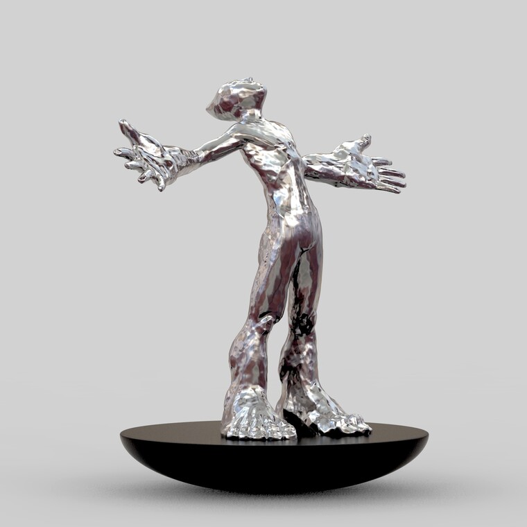 • [작가노트] 삶을 조각하다. 나는 삶을 조각합니다. 사전적 의미로 삶이란 사는 일, 또는 살아있는 모습을 뜻합니다. 그러니까 살아있다는 것은 아무것도 하지 않는다는 셈 치더라도 그 자체가 편안한 안식이 아니라 힘겨운 일이라는 생각이 듭니다. 나는 강인함에 대한 막연한 환상과 꿈을 가지고 있습니다. 그래서 유년기의 우상이던 만화주인공 아톰과 한국의 수호거인 금강역사상을 합치시킨 인간상을 창안하고, 단단한 검은 화강석과 같은 강인한 물질을 사용하여 형상을 완성시켰습니다. 그 인간상은 삶이라는 힘든 일에 초연해지고자 하지만 늘 그 안에서 갈등할 수밖에 없는, 완벽하지 못한 초인(超人)입니다. <바람이 불어도 가야 한다>에서 보듯, 주먹을 불끈 쥐고 한 걸음 내딛는 초인의 모습에는 꿋꿋하게 살아남고자 하는 나의 염원이 담겨있습니다. 내 작품 속에서 강인함은 <금 나와라 뚝딱>에서처럼 한국 전래동화 속 도깨비 방망이의 형태로 나타나기도 합니다. 도깨비 방망이는 하루하루 쌓여가는 일상의 고단함에서 벗어나고 싶은 인간의 소망을 우의적으로 형상화한 것입니다. <신화>에서는 스스로 굳건해지고 싶은 마음을 상상 속의 수호동물인 해태의 모티프를 끌어들여 표현하였습니다. 남을 두렵게 하기보다는 장난스러운 표정을 짓고 있는 호랑이를 통해 무거운 현실을 경쾌한 익살로 넘어서 보고자 의도했습니다. 삶은 불확실한 것이지만, 분명한 것도 있습니다. 그것은 반드시 살아본 자만이 삶을 이야기할 수 있다는 점입니다. 오늘도 나는 살아가면서, 삶을 조각하고 있습니다. [평론1] 바람이 불어도 기후 변화, 전쟁, 질병, 경제위기 등 국내외 정세는 사람들에게 좌절감과 박탈감, 공포감을 안겨주고 있다. 특히 전염병과 전쟁은 동시대 사람들에게 불안함을 조성하여 이제까지 삶에 대한 반성이 조금이나마 있어 보이게 하였다. 두려움을 간직한 채 경제활동이 제한받게 되고 한때 경제 파산으로 번질 것 같은 분위기이었지만 요즈음에는 위기를 벗어나서 새로운 사회로 진화할 것이라는 기대를 하고 있다. 최근 아트페어가 대중적인 관심 속에 상업적인 성공을 이루고 있는 것도 희망적인 경제활동의 영향으로 보인다. 아트페어는 대중의 관심을 끌어들이기 위해 축제 분위기와 프로모션을 하고, 전시되는 작품의 성격은 대중이 받아들이기 쉬운 내용과 가격을 지향한다. 아트페어의 성공으로 많은 사람이 미술작품에 흥미를 느끼고 수집한다면 우리 미술계의 발전을 기대해 볼 수 있을 것이다. 미술계를 위해서는 바람직하지만, 흥행이나 유행에 의존하는 예술형식이 얼마나 지속할 수 있는지, 우리의 삶에 어떤 영향을 줄 것인가에 대한 의심은 여전히 남아있다. 미술작품에 대한 일반적인 관심은 서구와 비교해서 우리나라가 비교적 미약하다. 그 원인은 우리 근대사에서 나타나듯이 스스로에 의한 문호개방이나 개혁이 없이 20세기를 맞이하면서 지식인 계층의 몰락과 20세기 동안 계속되었던 이데올로기 논쟁과 함께한다. 아직 동시대 미술이 모더니즘의 테두리 안에서 벗어나지 못하고 있음을 볼 때 그것을 증명하고 있다. 우리나라에서 모더니즘 미술은 정치적 이데올로기가 한창일 때 도입되어 활성화되었고 예술가들 사이에 통용되는 주관적 언어에 한정되어 사람들이 쉽게 받아들이기 어려웠었다. 근래 그러한 작품이나 경향들이 사람들에게 이목을 끄는 현상은 작품에 대한 이해가 높아지고 경제적 여유로 예술작품에 관한 관심이 커지고 있음을 알 수 있다. 그런 현상은 아트페어와 옥션의 흥행 성공과 관련이 깊다. 당장 미술계를 위해 좋은 일 같아 보인다. 반면 고양이나, 강아지같이 귀여운 동물형상이 아트페어에 자주 등장한다. 그러한 캐릭터 작품은 미술 형식에 대한 변화와 함께 대중적 욕망을 지닌 것으로 평가한다. 그와 함께 화려한 색상이나 반짝이는 작품들이 최근 트랜드로 나타나고 관람객의 시선을 자극하면서 현대인의 시선을 끌고 있다. 화사한 색상의 캐릭터와 빛나는 스테인리스의 광택은 예술로서 알레고리보다는 사람들의 감성적 이미지, 평범한 욕망을 자극하고, 대중들은 단순한 장식의 차원을 넘어서 물질주의 환희를 느끼게 한다. 작가는 하찮은 것, 일상적인 것에서 모티브를 찾아내 반짝이는 것으로 바꾼다. 최근 아트페어에서 스테인리스를 사용한 김성복의 <바람이 불어도 가야 한다.>를 볼 수 있었다. 그의 스테인리스 작품은 대중적 관심을 넘어서는 특이한 에너지를 지닌다. 그것은 인체를 기반으로 하면서 과장되게 변형된 형상에서 역동성을 지닌다. 인체의 균형으로 볼 때 커다란 손과 발은 전체 형상에 비교해 안정감을 주면서 움직이는 동세에 활력을 불러일으킨다. 전통적 조각에서 인체 형상은 신의 모습에 접근하기 위해 이상화된 비율을 찾고 있었다. 르네상스시기에 거론되기 시작한 인체 비례론은 인간 육체의 이상화로 신의 형상에 접근하려는 시도이었다. 그러한 형상은 이상화된 육체의 숭고함에서 출발한다. 그러나 현대의 인체 조각은 대중문화에서 볼 수 있는 캐릭터화된 모습이다. 미인대회, 영화, 광고모델, 육체미대회 등
