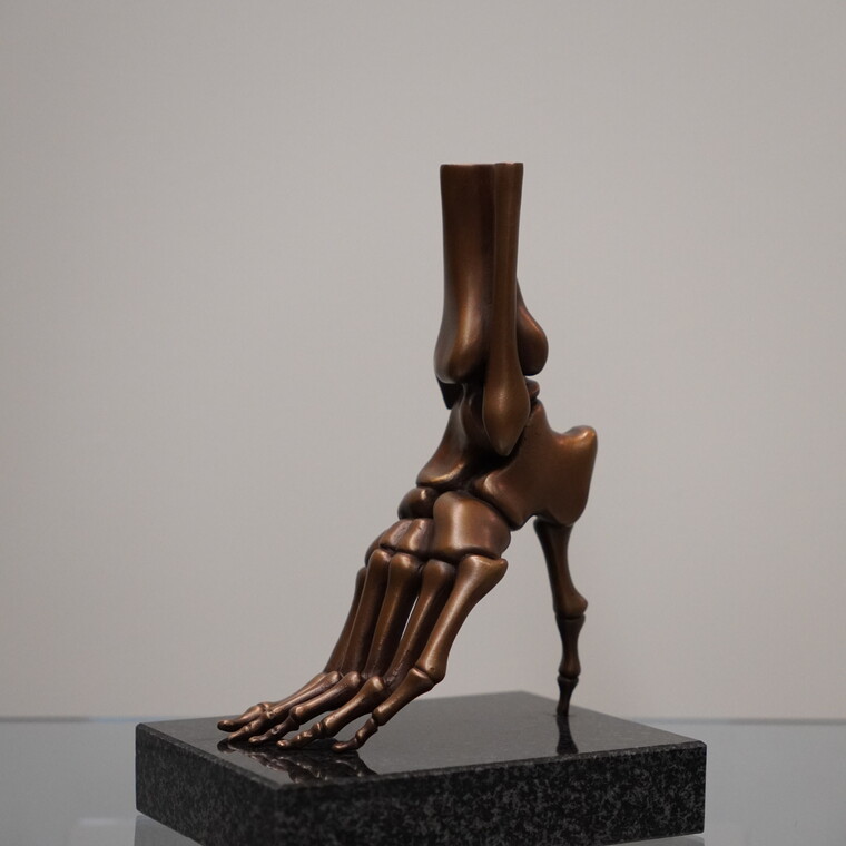 • [작가노트] 나는 인간의 욕망을 진화의 과정에 은유하여, 그것이 신체와 존재를 어떻게 변화시키는지를 조형적으로 탐구하고, 현대인의 불완전함과 가능성을 시각화한다. [평론] 입체적 욕망 인류는 현재의 모습에 도달하기 위해 끊임없이 변화해왔다. 인류의 발전은 여전히 지속 중이며 외부에 적응하고 주위 환경의 영향을 받아 점차 변혁의 구조를 달리하고 있다. 문명과 과학이 발달하기 전 인류는 생물학적 측면을 기반으로 진화하기 시작했다. 수많은 이주와 정착 속 다양한 조건에서 생존의 기본이 되는 식욕을 충족하고 사냥과 채집, 도구의 사용법을 두루 익혀 스스로 의식주를 해결하면서 입체적인 생활을 연명할 수있었다. 서바이벌의 세계에서 약한 종은 도태되고 더 강하고 적응력이 뛰어난 종만이 살아남는 자연의 섭리에 길들여지자 우리의 몸은 본능을 다스리는 법에서 멈추지 않고 인지와 지각, 사회적 상호작용이 가능해진 지점까지 진취하였다. 아주 먼 과거로부터 데이터를 축적하여 지금의 사회에 무리 없이 자연스럽게 존재할 수 있도록 성장한것이다. 행동을 분석하고 삶의 질을 판단하여 더 가치 있는 생을 지향하는 욕구는 지구상에서 유일하게 인간만이 행할 수 있는 지능으로부터 비롯된다. 더나은, 더 좋은 삶을 살고싶다는 아주 직접적이고 직관적인 욕망은 인류의 최초 진화 시점에서부터 이어져오는 본질이자내실이다. 김리현 작가는 인류의 역사를 인간의 욕망과 접목하여 작품에 반영한다. 작품을 통해 고등영장류에 접근하는 작가만의 방식을 헤아릴 수 있다. 인류의 겉모습이 변화한 양상은 많은 이들이 어렵지 않게 떠올릴 수 있다. 하지만 겉으로 보이지않는 내부는 쉽게 그려지지 않는다. 작가는 인간의 골격 중 가장 견고한 요소인 뼈를 주제로 마음 속 욕망의 모습을 나타낸다. 섬세하고 정교한구조인 뼈를 더욱 사실적으로 표현하기 위하여 레진을 이용하면서 다각도로 작품을 두각화한다. 작품은 인간의 존립과 욕망이 밀접하게 연결된 뼈의 프레임으로 이루어진다. 사회적 지위를 여실히 드러내듯 발뒤꿈치에 높이 자리한 뼈는 당당히 제 모습을 과시하고 있다. 각종 화려한 장신구로 치장된 반지가 한가득끼워 진 손은 인간의 끝없는 과욕을 상징한다. 이미 다른 손가락에 비해 기묘하게 늘어난 약지는 더 이상 반지가 들어갈 수 없을 정도로 변이된 상태이며 두개골에는 사치의 대명사인 왕관이 하염없이 씌워져 머리뼈 가장 끝에 놓인 관이 아슬아슬할 정도이다. 작가는 인간의 욕망으로 부와 명예, 권력을 내세워 작품에 수직적으로 노출하면서 사회에 팽배한 위계질서와 탐욕을 꾸짖는듯한 인상을 남긴다. 도드라진 왕관과 반지의 금속물질, 뼈의 윤곽과 내구성을 한데 채우는 요철들은 작품의 구조와 실물을 더욱 생생히 보여주고있다. 작가는 인체에 현존하는 골(骨)을 바탕으로 욕망이라는 단어 자체에 목적을 두어 형상화하고 관객에게 그 실체에 대하여 화두를 던진다. 모든 인간은 자연에서 선택되어 삶을 부여받았고 그 삶을 영위하기 위해 저마다의 욕망을 품는다. 인간의 욕망은 끝이 없고 같은 실수를 반복한다는 말처럼 개인이 가질 수 있는 욕구의 크기는 어림잡기가 불가능하다. 달고 작은 초콜릿 하나를 가지게되면 더 크고 맛있는 초콜릿케이크를 맛보고 싶어하는 아이처럼 주어진 것에 쉽게 만족하지 못하고 더 높은곳에 닿으려하는 욕심이 생기기 마련이다. 욕심이 뿌리내리는 순간 우리의 몸도 마음도 전부 만족을 향해 맞추어지고 변화하게 된다. 김리현 작가는 아직 끝나지 않은 인류의 흐름과 그에 비례하는 욕망에 초점을 두어 점진적으로 융기하고 돌출되는 뼈들을 고찰한다. 작품은 우리가 엑스레이 영사기에서 흔히 볼 수 있는 모습이 아닌 심연에 있는 내적 욕망을 비추고 표피가 벗겨진 본성을 첨예하게 조명한다. 부족과 결핍에서 우러나오는 야심 찬 감정은 작가의 손에서 가감없이 포장이 완벽히 벗겨진 얼굴을 한 채 찬란히 탄생한다. 이번 전시에서 감추어진 인간의 본 모습을 선연히 받아들이고 간직했던 욕망이 몸속에서 어떤 형태로 진화할지 생각해볼 수 있는 계기가 되기를 바란다. 작품을 몸소 느끼며 몸속 세포와 조직 하나하나가 전부 스스로를 향해움직이고 있다는 점을 다시금 환기해보기를 소망한다 최서원 | 갤러리도스 큐레이터