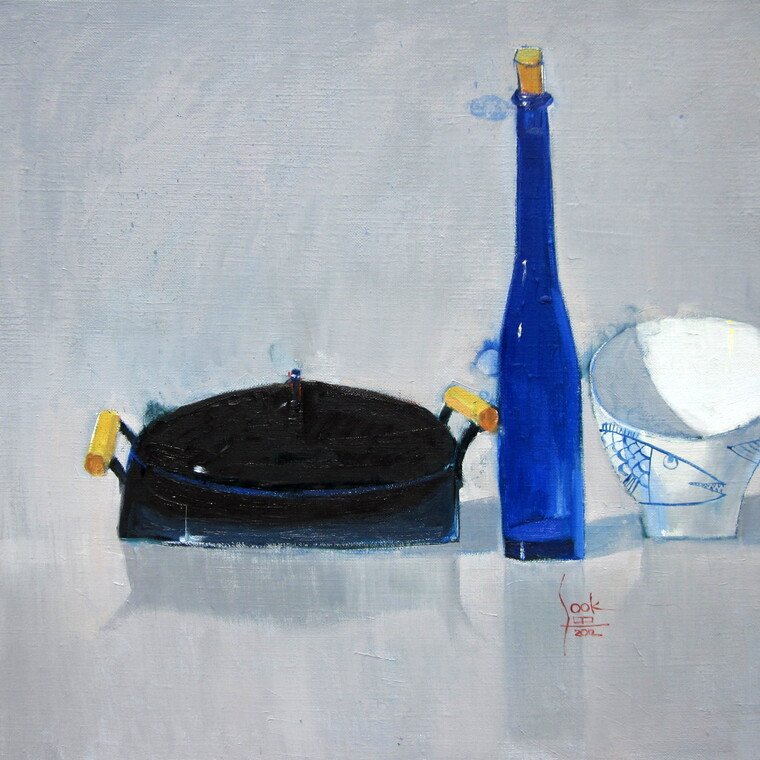 • [평론] 엄윤숙의 정물화는 그의 작품 전반을 지배하는 독특한 색채이미지를 구현하는데 그 중심적인 위치에 놓인다. 정물화는 지적인 조작이 용이한 장르이기에 그렇다. 다시 말해 소재 선택에서부터 구성 및 구도 그리고 색채조합은 물론이려니와 형태 묘사에 이르기까지 자의적인 해석이 가능하다. 그의 작품세계를 선명하게 부각시키는 색채이미지만 하더라도 정물화이기에 자의적인 해석의 범위가 넓고 자유롭다. 정물화를 통해 조형의 마술, 즉 무한히 열려 있는 창작의 바다에서 꿈의 유영을 즐기는 것이다. 그의 작품세계 전체를 조망할 경우에도 정물화는 백모란과 같은 존재로 그의 작품세계가 개화하는데 결정적인 역할을 했다. 정물화의 경우 소재에 따라 색채배열이 달라질 수 있다는 점이야말로 그의 색채감각을 이해하는 단서가 된다. 꽃을 소재로 한 작품이 대다수를 차지하는 것도 강렬한 색채이미지를 지향하는 그로서는 지극히 자연스러운 일이다. 꽃은 저마다 고유의 색채, 즉 화려한 색깔을 가지고 있어 그 색깔을 중심으로 하여 배색이 결정될 수 있다. 전체 면적에서 차지하는 부분이 적을지라도 꽃의 존재감은 그 중심에 있기 마련이다. 향기처럼 발산하는 강렬한 존재성으로 인해 꽃이 중심적인 이미지가 될 수 있는 것이다. 신항섭(미술평론가)