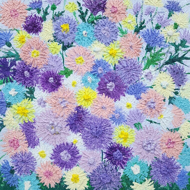 • [평론] 이명화, 엉겅퀴 이야기 이명화는 산과 들이라면 어디든지 볼 수 있는 엉겅퀴를 모티브로 삼는다. 어찌보면 너무 흔해서 사람들의 주목을 잘 받지 못할 수도 있지만 이명화에게는 각별한 존재이다. 작가가 쓴 ‘소멸, 그 아름다움’이란 글에는 이런 생각이 잘 담겨 있다. “구름 한 점 없는 산길, 타는 듯한 햇볕이 내려 쬐는 길가에 핀 엉겅퀴를 본적이 있나?그 타는 듯한 太陽 아래서 가시를 달고 있는 짙푸른 이파리의 엄격함, 화산에서 붉은 용암이 솟아 나오는 듯한 요염한 불꽃 같은 꽃, 농염한 아름다움과 고혹적인 색감에 매료된다.” 이명화는 유년시절 경상북도 안강이란 마을에서 자라나 어렸을 적부터 산과들의 자연물들을 벗삼아 지내왔다. 성인이 돼서 그곳을 떠나왔지만 언제나 그의 가슴속에는 안강의 뚝방길에서 뛰어 놀았던 즐거운 시절과 들판에 만개하였던 들꽃들이 남아있다. 안강은 추억의 원본이자 순결한 냄새가 풍기는 곳이다. 그의 그림은 이처럼 고향에 관한 추억에서 싹을 틔우고 또 길어올려지고 있다. 그의 작품을 추적해가면 그의 심상을 파악할 수 있는데 가령 2002년에는 들판속의 야생화를 비롯하여 해바라기, 맨드라미 등을 다루었고, 2004년의 노송, 2005년에는 주로 정물화를 통해 화사하게 피어난 꽃들을 즐겨 다루었다. 2009년에는 단 한차례 예외적으로 여성의 장신구를 다룬 개인전을 열었을 뿐 대부분의 테마는 야생화와 식물에 초점이 맞추어져 있다. 이번 전시의 출품작은 엉겅퀴만을 대상으로 하고 있다는 점에서 지금까지의 기조를 이어가고 있는 것으로 파악된다. 작품에 등장하는 엉겅퀴는 작가가 산행에서 만난 것들로 오서산,치악산, 지리산 칠보산, 칠장산, 군자산, 속리산 등지를 여행하면서 산중에 핀 엉겅퀴를 카메라에 담았다가 스튜디오에 돌아와 그것을 그린다고 한다. 그의 엉겅퀴는 대체로 흐릿한 풍경을 후경으로 삼고 있다. 산중턱 또는 정상에 올라 내려다본 풍경이랄 수 있으며 전면에는 예외없이 엉겅퀴가 자리잡고 있다. 작가는 엉겅퀴를 ‘요염한 불꽃같은꽃’으로 묘사하였지 만 사실 그 꽃은 가시가 나있어 만질 수 없으며, 이파리는 무슨 사연이 그렇게 많은지 톱날처럼 날카로운 돌기로 보는 사람에게 경고신호를 보내고 있다. 짓궂은 손에 괴롭힘을 당한 탓일까, 거센 바람과 찬공기에 시달리고 움추리며 살아오면서도 연분홍꽃을 피어낸 엉겅퀴, 그러기에 엉겅퀴의 존재는 더없이 귀해 보인다. 핏빛 면류관을 둘러쓴 엉겅퀴는 우리에게 아픔 없이 사랑할 수 있느냐고, 눈물 없이 사랑하겠느냐고 되묻는 것같다. 그림에 핀 엉겅퀴는 웅장하거나 화려하지 않지만 그 삶의 여로를 돌이켜 보면 숙연해진다. 작가의 그림에는 황금기를 보낸, 하얀 보풀이 휘날리는 엉겅퀴도 자주 눈에 띈다. 흰털에다 씨를 실어 주위로 날리며 겨울채비를 서두른다. 가을의 엉겅퀴는 그야말로 추레한 모습일 수밖에 없다. 여름철의 전성기에 비하면 이만저만 볼품이 떨어진 게 아니다. 그런데도 이명화가 초라한 엉겅퀴마저도 주목하는 것은 그것의 장렬한 죽음속에서 다음 생명을 위한 고결한 희생정신을 보았기 때문이다. 이렇듯 작가는 한때는 영화로왔으나 이제는 시들어 보잘것없이 되어버린 꽃속에서 ‘한 가닥의 진실’을 찾아내고 있는 것이다. 이런 모습을 작가는 담백하고 소박하게 나타내고 있다. 엉겅퀴의 화려한 겉모습 대신 그는 자신이 잉태한 씨앗을 마지막 한 털까지도 바람에 멀리 날려보냄으로써 다음 세대를 준비하는 자기비움과 희생의 의미를 환기시키고 있는 것이다. 절제된 색감을 통해 소멸의 아름다움이 지닌 가치를 전달해주고 있는 셈이다. 작품에서 주목하는 부분은 기법상의 문제이다. 덧칠하여 형태와 색채를 완성해 가는 이전의 유화 작품과는 달리 터치와 물감 자체의 질료감을 매우 중요시 된다. 동일한 물감이라도 물감의 양과 건조시키는 시간의 차이점을 생각하고, 테레핀 같은 종류의 용매제를 사용하지않고 물감 그대로의 날것만을 캔버스에 올리는 기법을 사용한다. 그러면 물감이 화면에 고착화되지 않고 그대로 점성을 지니게 되는데, 그러한 물감의 특성을 이용하여 형태를 만들어 간다. 물감의 점성은 건조되는 시간에 따라 완성되어지는 최적화의 조건을 만들어 준다. 정지 화 된 화면은 형태나 색감을 올리는데 ‘찍는 기법’을 수반하게 한다. 수없이 반복하여 찍어 내린 화면은 두툼한 질감을 만들어 단색의 병치 혼합을 동반하게 한다. 일반적으로 병치 혼합이란 색채에 있어서 시각적인 혼합의 결과를 보여주는 요소이지만, 두터운 질감으로 이루어진 캔버스에서는 그 성격을 달리한다. 자세히 보면 물감의 알갱이들이 서로 엉켜서 늘어져 있기 때문에 단색을 집적하여 소묘적인 효과를 볼 수가 있다. 단순한 소묘가 아닌, 색채를 가감하여 이미지화된 소멸의 기법인 것 이다. 엉겅퀴의 생물학적 이미지는 단단함 그 자체의 상징 성을 띤다. 온 몸에 갑옷을 두른 채 가시가 솟아나 있고 단단한 이파리는 그 엄격한 형태를 이루고 있으며 봉우리는 수많은 돌기의 결정체이다. 그러한 하나의 완성된 이미지는 ‘찍는 수