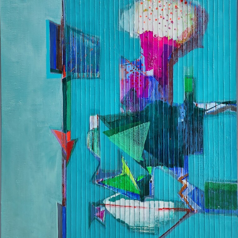 Acrylic on canvas, thread, 색연필 65.1×53cm 2024
