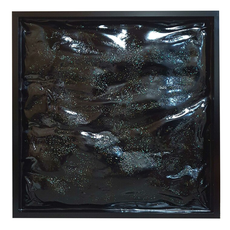 판넬에 옻칠, 천, 폼 48.5x48.5cm 2023