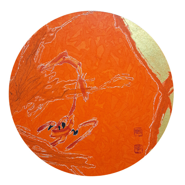 한지에 수묵, 금분, 안료 지름30cm 2022