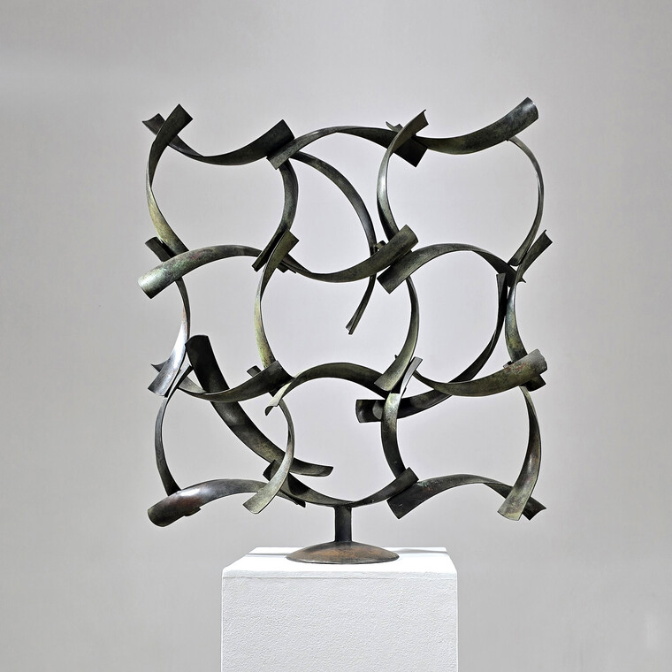 • [작가노트] 생명의 노래와 춤 나의 작업은 자연과 생명, 그리고 그 안에 흐르는 보이지 않는 기운에 대한 사유에서 출발한다. 금속이라는 물질은 본래 무겁고 단단하지만, 나는 그 물성 속에서 율동과 생명성을 끌어내고자 한다. 이는 자연이 지닌 끊임없는 움직임과 생명의 리듬을 형상으로 드러내기 위한 시도이다. 작품에는 우리 전통 문양과 건축, 공예, 벽화 등에 스며 있는 영적 기운이 바탕으로 깔려 있다. 나는 이를 춤에 비유한다. 춤은 형태이면서 동시에 흐름이며, 정지된 순간 속에서도 시간과 에너지를 품고 있다. 금속 조형 역시 그러한 움직임의 기억을 담아내는 매개체가 된다. 무리지어 수면 위를 날아오르는 새들의 모습은 일상의 감각을 깨우는 자연의 은유로 등장한다. 이는 단순한 자연 묘사가 아니라, 현대인의 감각 속에서 점차 희미해지는 생명의 떨림을 환기시키기 위한 장치이다. 작품 속 금속 조각들의 집합은 개별 존재이자 하나의 유기적 흐름을 이루며, 생명의 군무를 이루듯 공간 속에 펼쳐진다. 또한 이 작업은 현대사회에서 잃어가고 있는 원초적인 존재의 기억에 대한 질문이기도 하다. 자연의 생명력과 시간, 공간이 만나는 지점에서 우리는 무엇을 잃었고, 무엇을 되찾아야 하는가를 스스로 묻고자 한다. 사라져가는 자연과 생명의 존엄성은 작품 속에서 하나의 노래가 되어, 가식과 허위로 가득한 문명 속에서도 희망의 가능성을 조용히 들려준다. 한국 건축의 처마선은 나에게 중요한 조형적 모티프이다. 무거운 소재임에도 불구하고 하늘로 날아오르듯 자연과 어우러지는 그 선의 기운은, 생명이 지닌 근원적인 율동과 맞닿아 있다. 나는 금속을 통해 그 본질을 드러내고, 자연과 인간, 전통과 현대가 만나는 접점을 형상화하고자 한다. 이 작업들은 결국, 생명에 대한 경외와 자연과의 조화로운 공존을 향한 나의 지속적인 사유의 기록이다. 2026.2 김 준