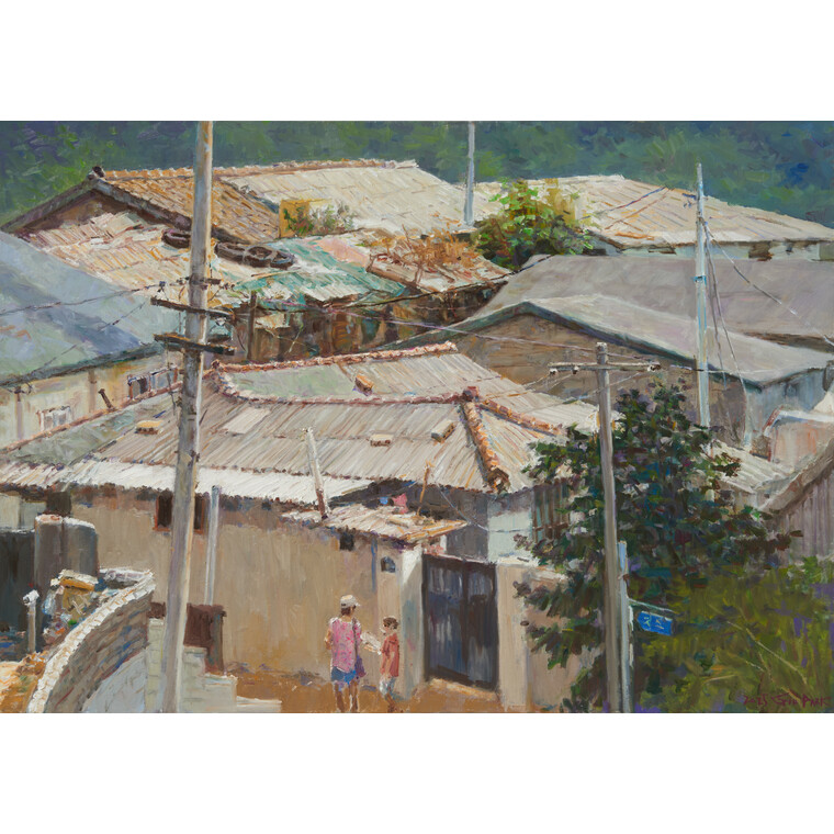 • [평론1] 삶에 대한 기쁨과 감사와 행복의 언어를 보여주는 작가 박지오 박지오는 우리 미술계의 큰 축을 이루고 있는 구상미술 작가의 일원이면서도 독특한 자기 세계를 확립한 작가로 평가되고 있다. 구상 작가들의 작업이 그렇듯 그 역시 자연과 풍경을 표현해 내고 있다. 그러나 박지오의 풍경은 정경에 대한 사실적 묘사에 치중하기 보다는 풍경들이 지닌 내면적 함의, 즉 눈으로 읽을 수 없는 행간의 모습과 뜻을 담아내고 있다. 그 풍경들은 무척 인간적이고 인생적이다. 수려한 자연 풍광이나 화려한 도시 풍경이 아닌, 서민적인 거리 풍경, 즉 인간의 삶이 서로 섞이고 녹아드는 애환의 정경을 담아내고 있는 것이다. 그래서 그의 화면은 낯익고, 마치 우리들의 삶에서 경험하는 일상들이 자연스럽게 펼쳐져 있다. 작가적 정신과 테크닉이 잔잔하면서도 탄탄하게 조율되고 있는 것이 박지오 조형의 매력이라 할 수 있다. 서민의 낮은 풍경들이지만 거기엔 생에 대한 따뜻한 포옹과 시선이 면면히 배어 있다. 생에 대한 긍정적인 바라봄, 삶에 대한 기쁨과 감사와 행복의 언어가 밀도 있게 엮여져 색깔로 풍경과 사물에 옷을 입히는 그의 작업은 새로운 구상주의, 새로운 자연주의 작가로서 그를 떠올리게 하고 있다. 생의 숨결이 배어나는 화면을 통하여 그가 서술해가는 인간의 이야기는 신신한 자연의 생명력과 더불어 그의 조형을 지키는 축이 된다. 그만큼 그의 화면에선 인간 박지오의 체취가 물씬 풍겨 나온다 유석우(미술시대주간) [평론2] 또 다른 욕구를 위한 여명의 신호 - 화가 박지오의 작품 세계에 대한 존재론적 소고 작가의 풍경들은 응시자에게 전혀 낯설지 않고 오히려 어디서 많이 본 익숙한 장면들 - 예컨대 시장 풍경, 거리 풍경, 군상들, 산동네 풍경, 비탈진 골목길, 변두리 한적한 도로, 버스 정류소, 화가 자신이 살았거나 현재 살고 있는 동네 풍경 - 등과 같이 누구나 경험하는 일상의 단면들로 나타난다. 그러나 장면들은 엄밀히 말해 현실의 단순한 묘사나 재현이 아니라 과거 자신이 경험한 기억의 인상으로부터 다시 재구성된 현실로 이해된다. 이때 이미지를 이해하는 가장 중요한 것은 그림 행위 그 자체와 시각적인 정보가 아니라, 그 행위에 앞서 일어난 어떤 비밀스런 생성(genese), 즉 자신도 분명히 인지할 수 없는 어떤 느낌으로서 대상과의 강렬한 교감이다. 이러한 형이상학적인 원인을 존재론적으로 스팀뭉(stimming)이라고 한다. 이것은 유일하게 느낌의 어조 혹은 음색(tonalite)으로 번역되는데, 특별히 작가들이 실행하는 예술적 행위에 있어 가장 원천적인 무엇이 된다. 또한 우리가 작품이라고 하는 것은 바로 이러한 형이상학적인 존재가 물질로 전이(轉)된 것을 말한다. 특히 “화가는 그때 거의 영감(신의 계시)으로부터 행동한다. 형이상학적 경험이라는 의미에서 그림은 화가가 화폭을 이젤에 놓기도 전에 그리고 색의 연금술이 정리되기도 전에 이미 시작된다.(...)그림은 스팀뭉의 찰나(instant)를 가지자마자, 작가의 기억소생으로 진행된다. 그래서 스팀뭉의 발견은 우선적으로 작가에게 생성을 자생하는 의미를 가진다.” 스팀뭉의 물질적인 재생은 작품의 진행 과정 특히 표현주의 계열의 작품에서 보다 분명히 나타난다. 그림의 내부적 주제는 작가가 그림을 그리기 이전에 이미 잉태되고, 흔히 자신의 순수 기억이나 또 다른 환상의 욕구로서 레미니센스는 이러한 주제의 배경이 됨과 동시에 화가가 가장 먼저 활용하는 중요한 대상이 된다. 예를 들어 폴클레(Paul Klee)의 “음악의 그래픽적 전이”나 마르셀 프루스트(Marcel Proust)의 마들렌 과자가 유발하는 무의식적 기억은 사실상 작가의 기억소생을 통한 상황적인 음색의 재구성이라고 할 수 있다. 이러한 맥락에서 볼 때 작가의 풍경은 더 이상 있음직하지 않은 기억의 재구성 즉 “스팀뭉과 영혼의 결정적 찰나(instant accorde)”로서 스팀뭉겐(Stimmungen)의 흔적으로 나타난다. 그러나 여기서 말하는 결정적 찰나의 포착은 관념적이고 초월적인 것이 아니라 완전히 내재적인 것이다. 왜냐하면 이러한 찰나는 비록 인간의 제한된 감각으로 도달하지 못하지만 현실적으로 누구 경험할 수 있는 “내부적 경험(experience interieure)"이기 때문이다. 그래서 이러한 지시적인 그림을 이해하는데 있어 우선적으로 고려해야 하는 것은 이미지가 외시하는 논리적 진술이 아니라 그 그림을 있게 한 형이상학적인 순수 출현 즉 모든 예술적 재현 행위가 시작되는 제로 단계로서 작가의 내부적 경험이다. 이 경험은 우리에게 말하자면 우리가 좋아하는 음악을 들을 때 그 음악에 대하여 전혀 논리적 이유를 달지 않는 순수 그 자체의 즐거움이나 희열을 준다. 그래서 작가가 사실주의 풍경을 통해 우리에게 보여주는 실질적인 메시지는 결코 작가의 경험적인 울타리를 벗어나지 않는다. 그는 그림 행위가 반복되는 과정에서 자신의 삶과 경험이 작품에 은밀히 침투하여 자신도 모르는 일종의 “무의식적 시선(vision inconsciente)"을 발견한다. 작가는 ”사람들이 무심코 지나쳐 버리는 하찮은 것과 초라하고 낡은 풍경이라 할지라도 세한 빛과 색 속에 
